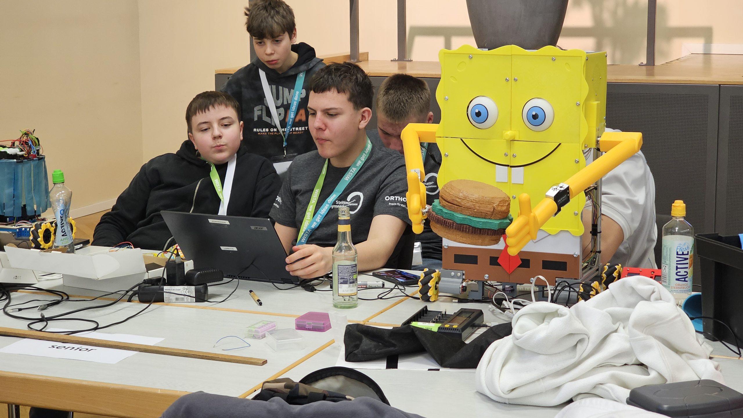 Auch das zweite Team aus den achten und neunten Klassen mit Daniel, Jasper, Conner und Vova zeigte eine beeindruckende Performance. Mit technischer Präzision, strategischer Planung und ruhiger Nervenstärke meisterten sie die Wettbewerbsaufgaben souverän. Besonders bemerkenswert war ihre Fähigkeit, spontan auf Herausforderungen zu reagieren und ihre Lösungen weiterzuentwickeln.