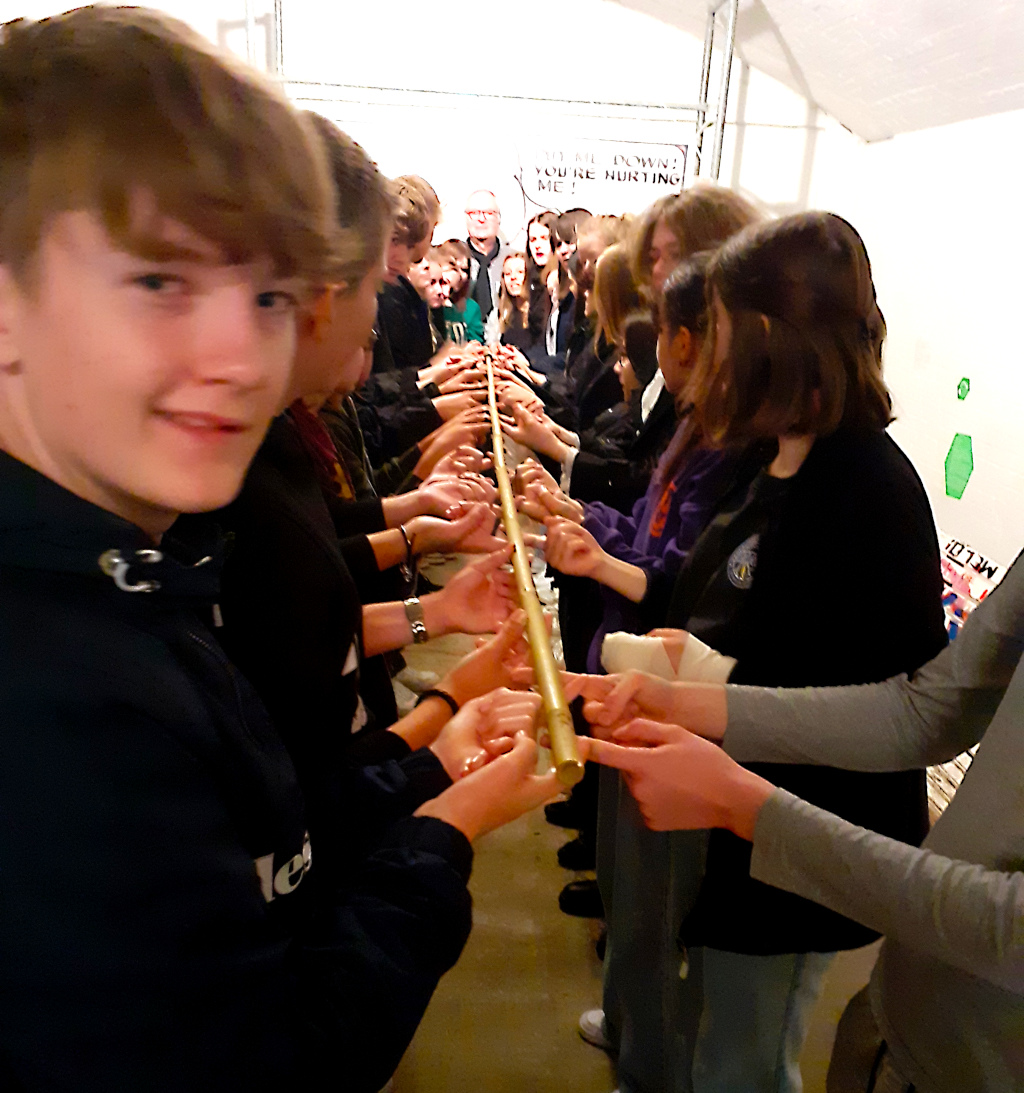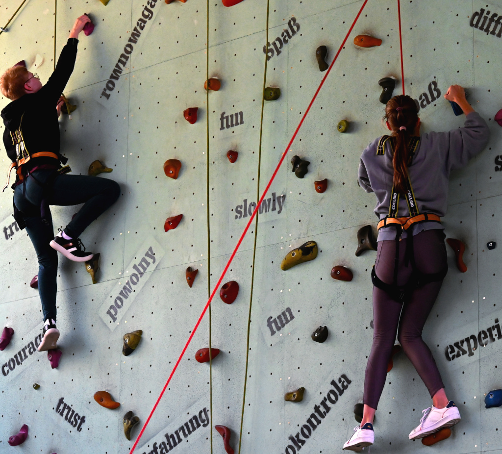 Im Workshop befassten sie sich am 2. Tag in der „Glücksschmiede“ mit Selbstvertrauen, Selbstwert und Selbstbewusstsein und zwischendurch Übungen zur Achtsamkeit. Im Hochseilgarten absolvierten sie den Teamparcours, Pamperpool. Sie waren an der Kletterwand und testeten ihre an einem 12 Meter hohen Turm aus.