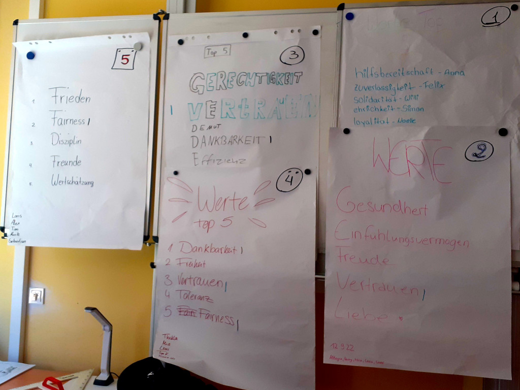 Hier haben sich alle 8. Klassen jeweils einen Tag damit auseinanderesetzt, wie man am Besten miteinander respektvoll umgehen kann und welche Werte vertreten werden (z.B. Fairness, Vertrauen, Toleranz u.v.m.).